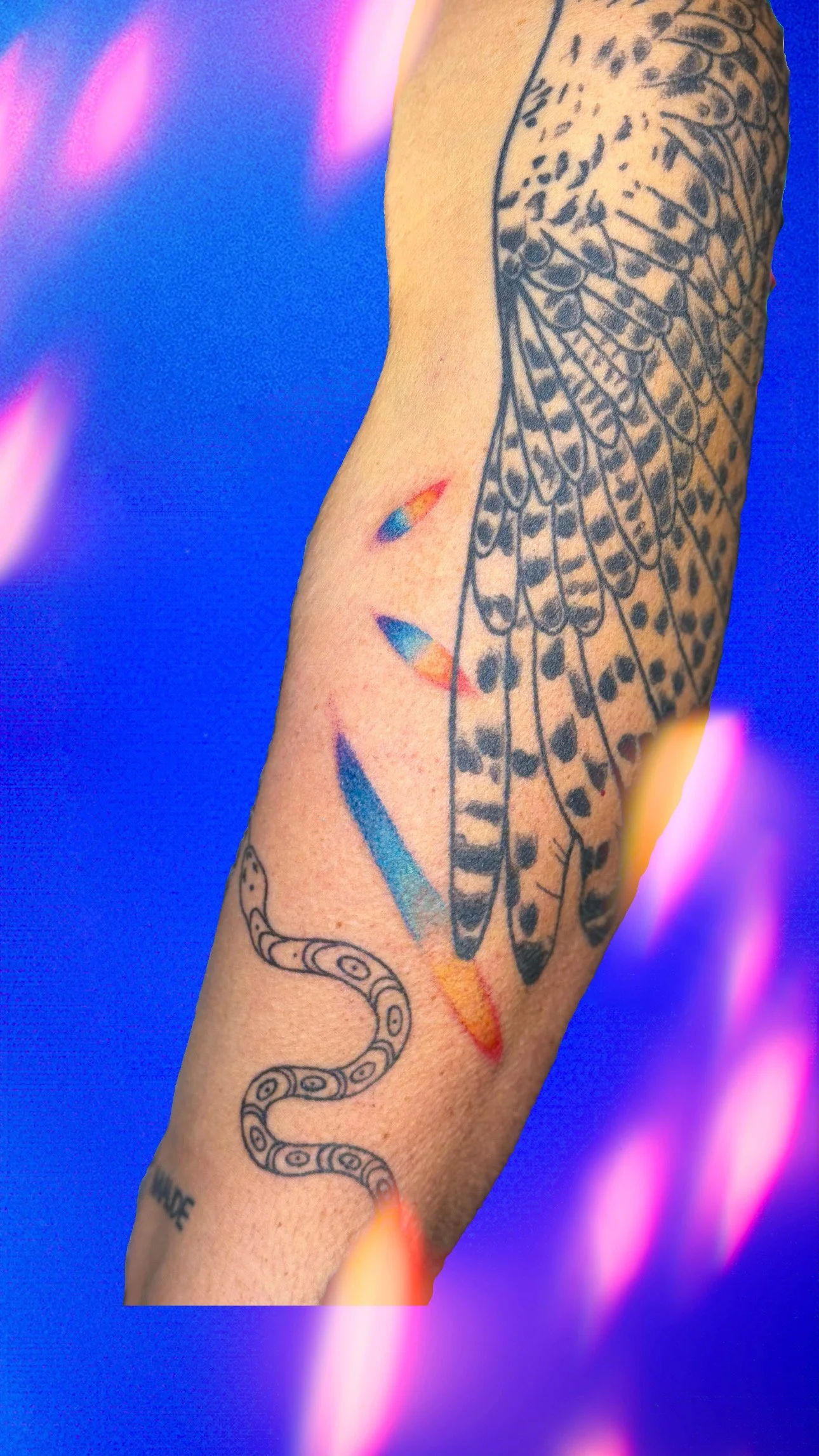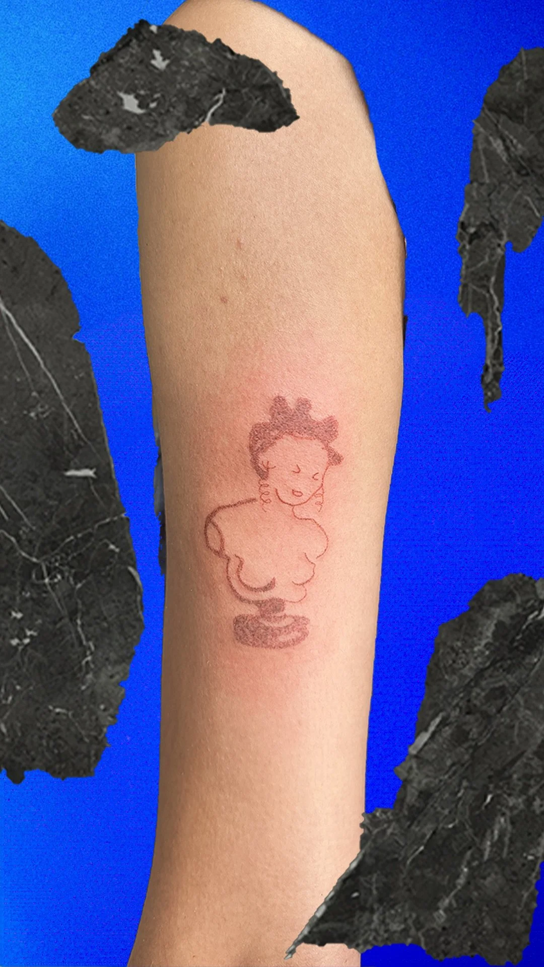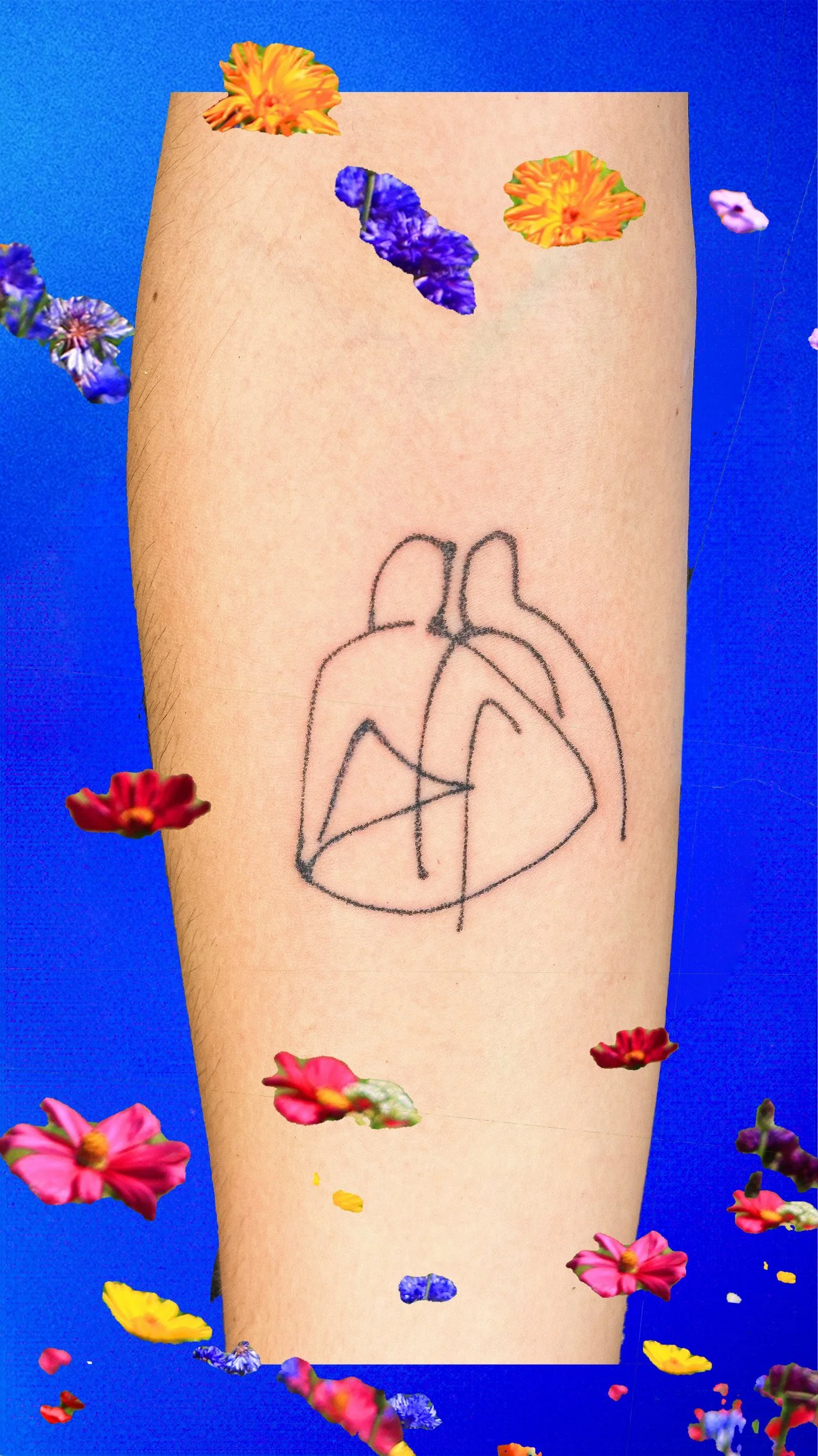 Each tattoo is created by hand using the handpoke method. It is a slow and deliberate process that centers care, presence, and conversation. These small, permanent works are part of my broader multidisciplinary practice exploring queer identity, memory, and visual culture.
